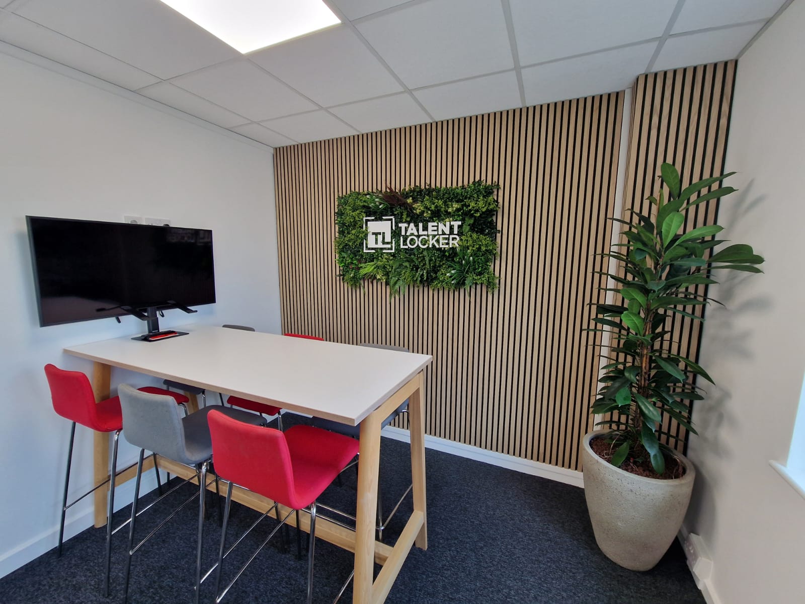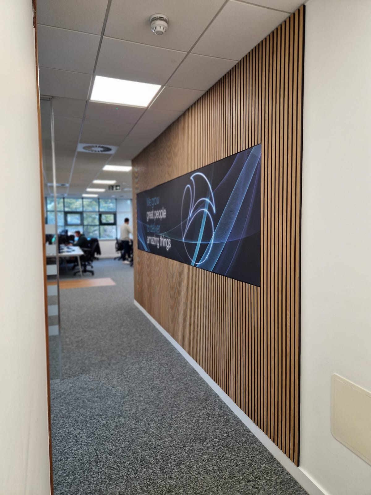 Slatted acoustic panelling is, designed to enhance the acoustics of your office space while adding a warm, natural aesthetic. These panels effectively reduce noise, control reverberation, and create a more comfortable and productive work environment by absorbing sound.